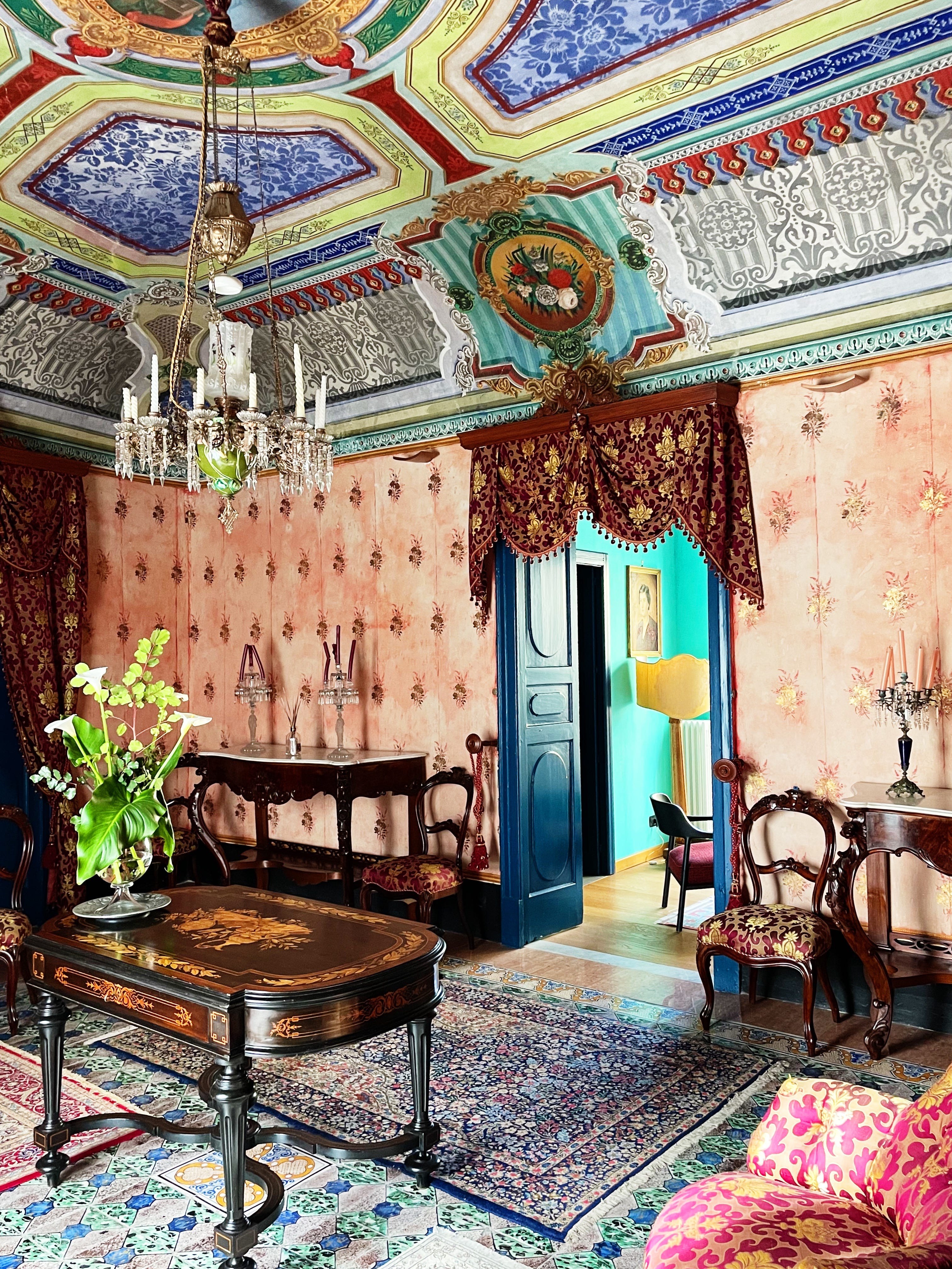 We head out of Catania this evening for a stay at Palazzo Previtera, a unique guesthouse that dates back to the 17th century. Located at the foot of Etna, the island’s volcano, Palazzo Previtera is best experienced to be believed. Hand painted murals, extravagant 19th century brocade draping, Murano glass chandeliers and antique furniture that is original to the house are what make this spot a total feast for the eyes. Then there’s the garden breakfast in view of mount Etna which has a puff or two while we eat our ricotta filled pastries (Cassate) in the morning.